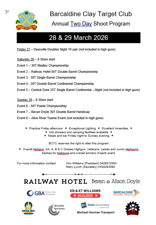 Barcaldine Clay Target Club Annual 2 Day Trap Carnival
