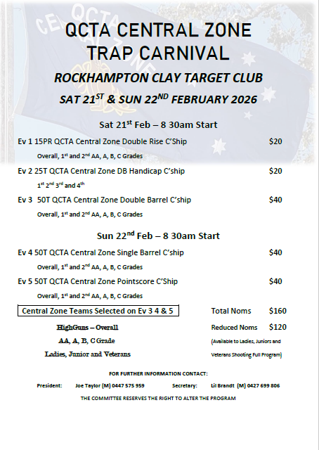 CZ Annual 2 Day Trap Carnival Hosted By Rockhampton Clay Target Club