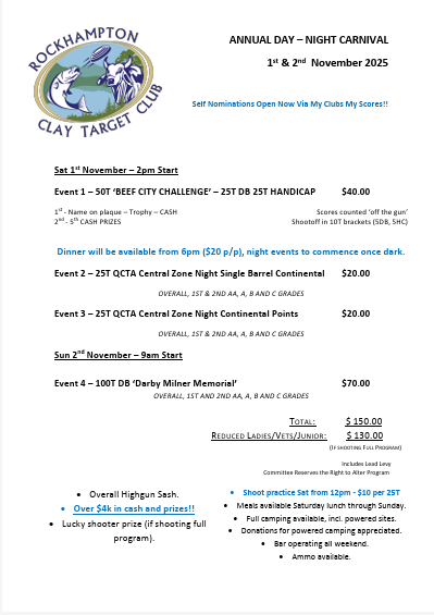 Rockhampton Clay Target Club 100T ‘Darby Milner Memorial’