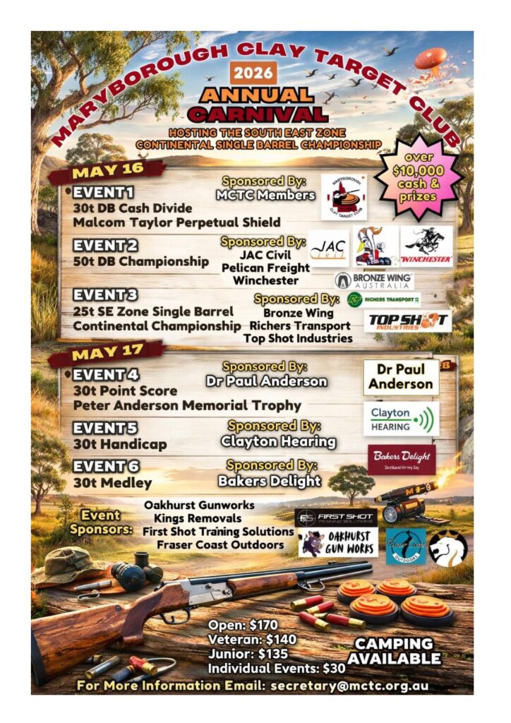 Upcoming clay target events throughout Queensland